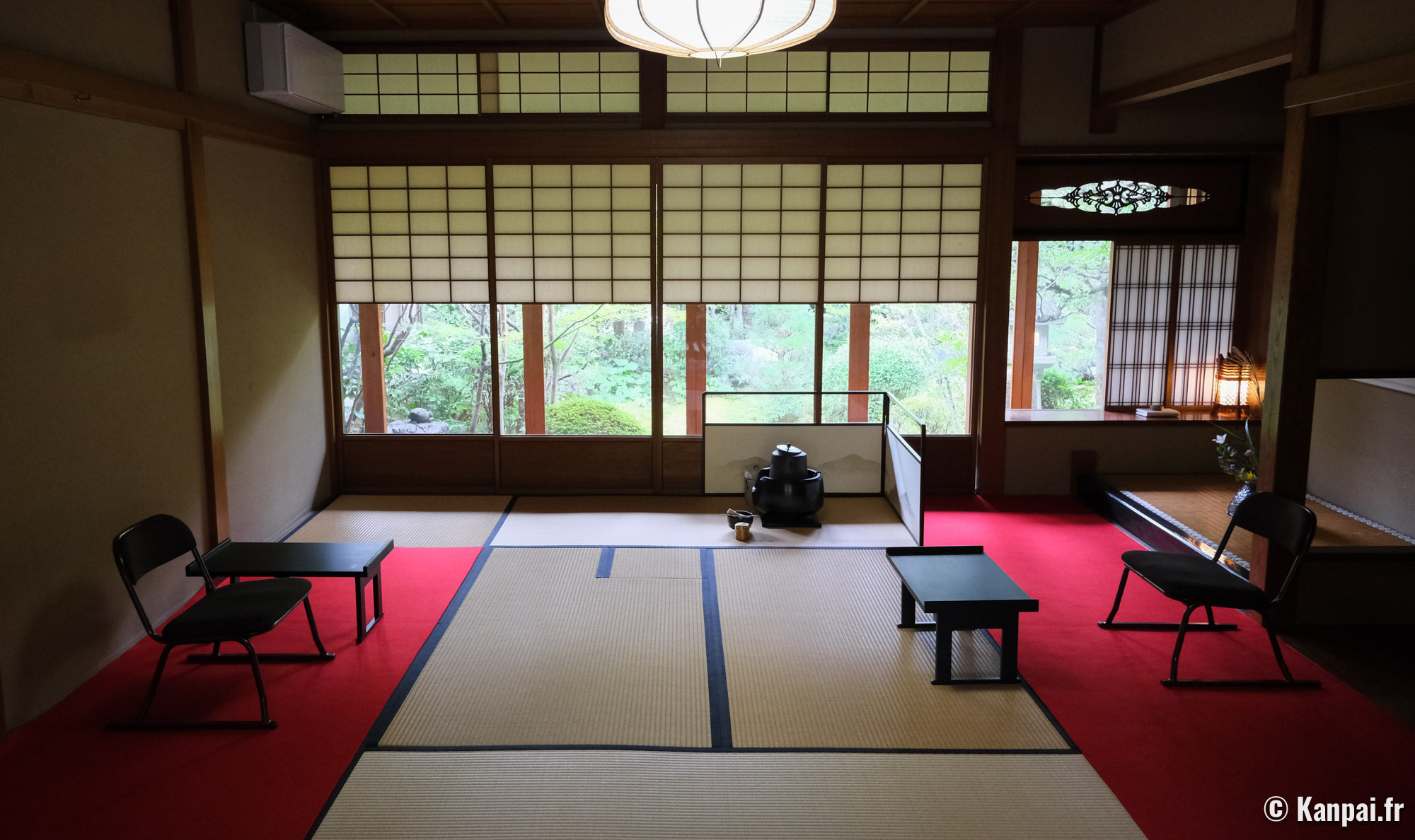 - Yoshimasa Ashikaga (1435 - 1490, règne de 1449 à 1473), quant à lui est au cœur de la culture de Higashiyama où se trouve sa résidence, aujourd’hui Ginkaku-ji (le Pavillon d’argent). Ce courant contraste avec la culture de Kitayama par un retour à des expressions plus sobres sous-tendues par l’esthétique wabi-sabi (simplicité et modestie). L’art des jardins évolue de la promenade à la contemplation ; la cérémonie du thé et l’ikebana commencent à se formaliser.