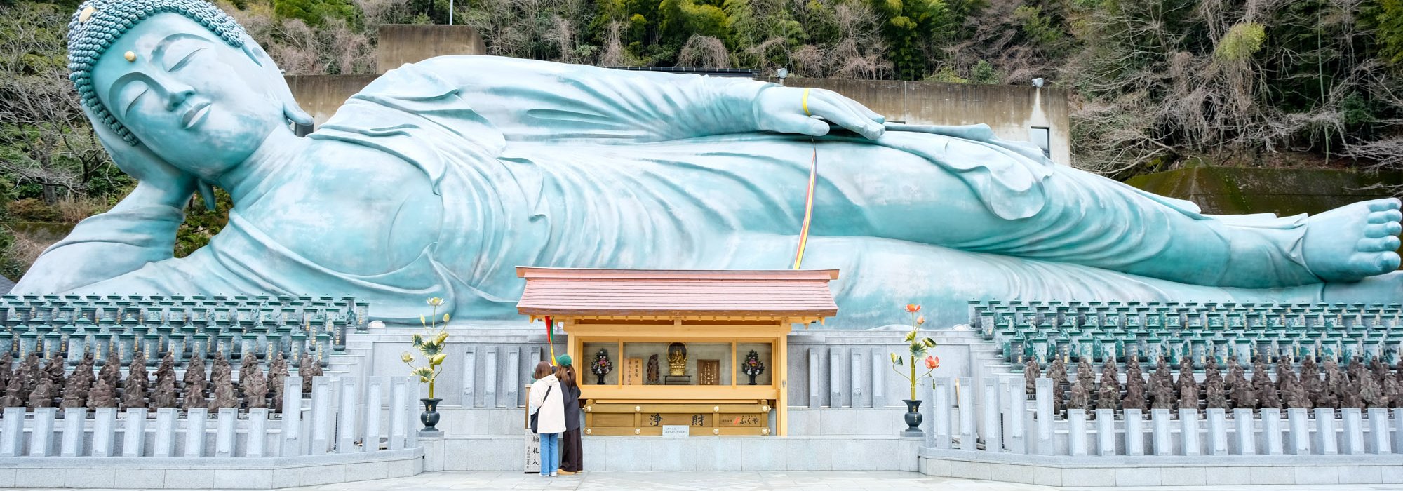 Parmi les grands bouddhas Daibutsu du Japon, celui du Nanzo-in se démarque par sa position couchée qui illustre la fin de vie de Shaka, le bouddha originel qui attend alors sereinement son entrée au Nirvana (Nehan en japonais). Le Daibutsu de Fukuoka est ainsi officiellement baptisé Shakanehan-zo (釈迦涅槃像). Il s'agit de l'unique grande représentation couchée de Bouddha au Japon.