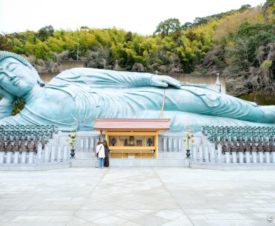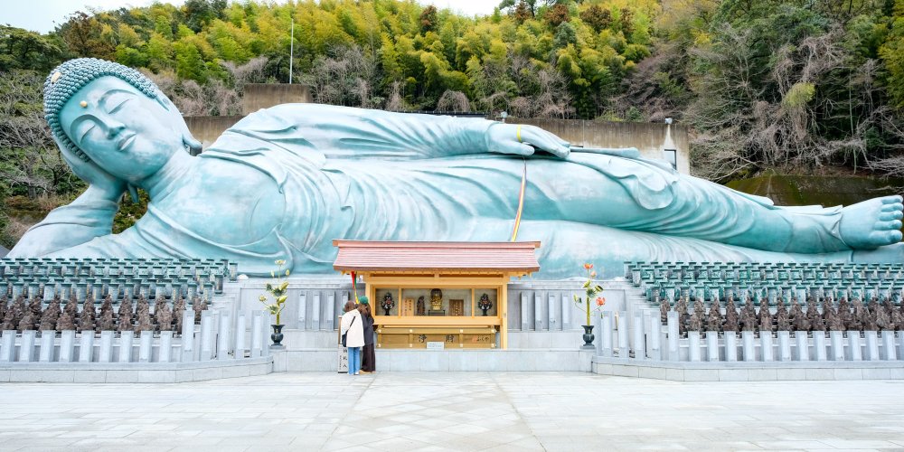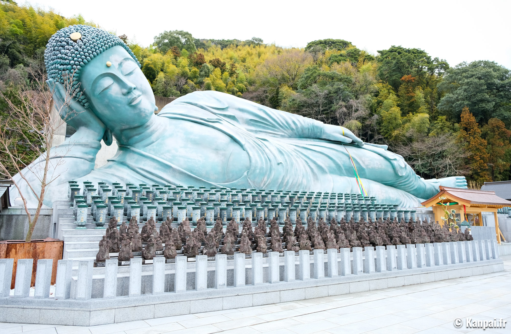 Au sein du Nanzo-in, le grand Bouddha de Fukuoka dispose de sa propre esplanade dédiée, située légèrement à l'écart du reste du temple, comme si elle avait été rajoutée après coup. Ce qui est effectivement le cas, la statue de Bouddha couché s'avérant moderne et datant de 1995.