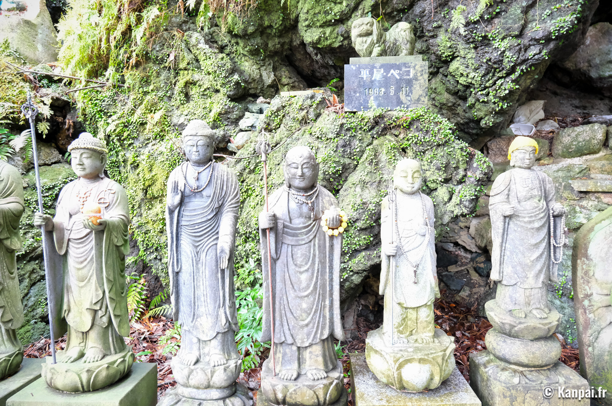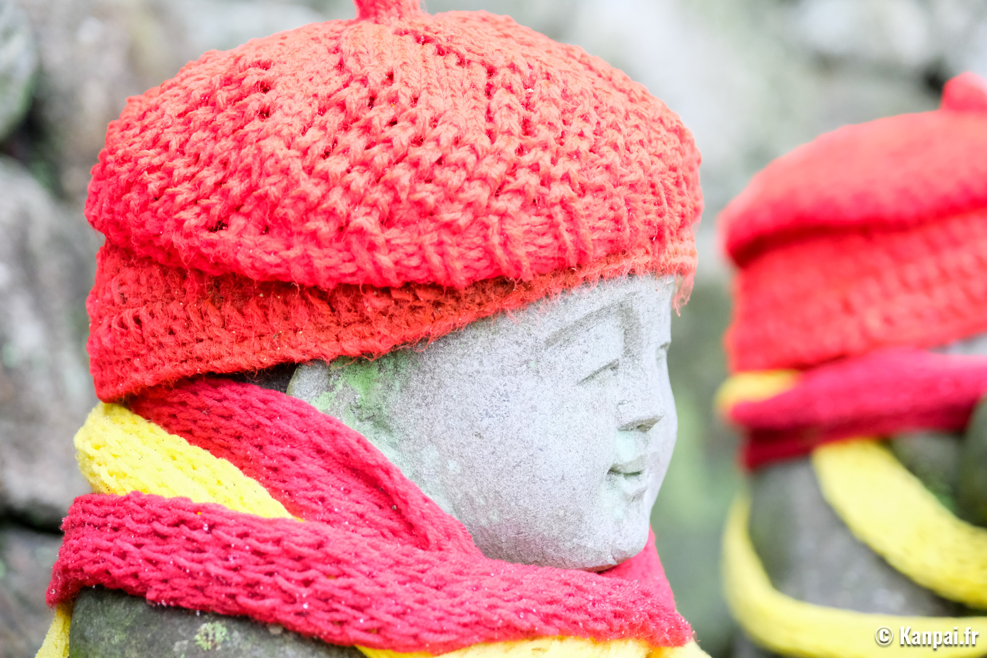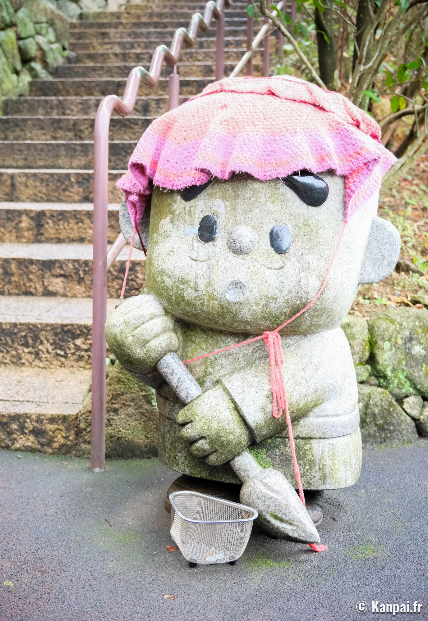 - Jizo, le protecteur des enfants, des voyageurs et plus précisément des pèlerins, reconnaissable au port d'un bonnet et d'un bavoir ;