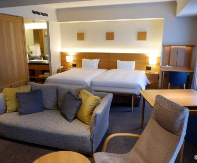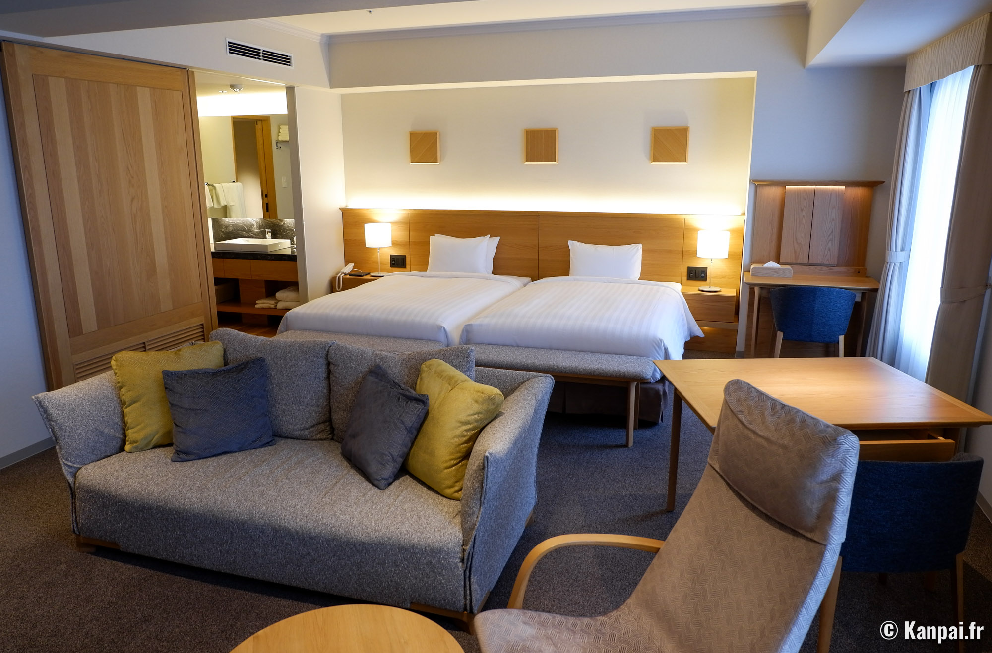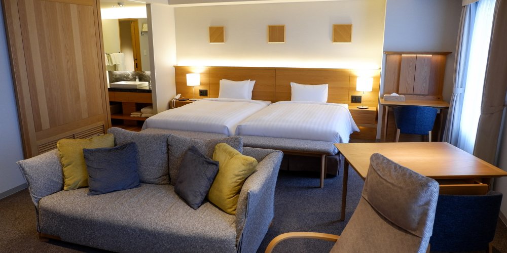 Toutes les chambres se révèlent spacieuses, lumineuses et propres. Une literie à l'occidentale est proposée. On retrouve également 3 chambres aménagées à la japonaise et dotées d'un espace sur tatami pour y déployer des futon. Chaque espace de nuit dispose de sa propre salle de bains 🛁 avec toilettes 🚽 privées, ainsi que d'équipements et services hôteliers attendus.