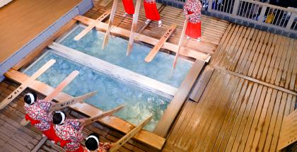 Eidaya est une auberge populaire traditionnelle située dans le centre-ville de Kusatsu, dans la préfecture de Gunma. Impeccables et jolies, les chambres sont aménagées à la japonaise avec sol en tatami, futon et petite table base. L'établissement dispose également de ses propres bains chauds onsen dont certains peuvent être privatisés.