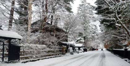Hors saison, il ne faut pas compter sur les services de proximité mais le paysage reste beau, avec la neige qui recouvre les rives du lac et les pavillons shinto. Le réseau de bus reste actif à l’année, certes avec une fréquentation moindre et l'on conseille donc de bien consulter les horaires en amont.