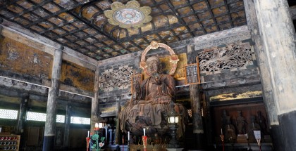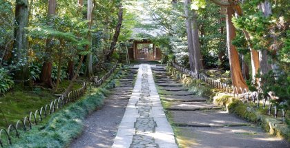 Munis du ticket d'entrée, on continue le long de la route par la traversée d'un charmant petit tunnel de pierre baptisé Shokakudo (招鶴洞) en référence à un événement historique, lorsque Minamoto no Yoritomo (1147 - 1199), fondateur du shogunat de Kamakura, aurait libéré une grue 鶴 tsuru.
