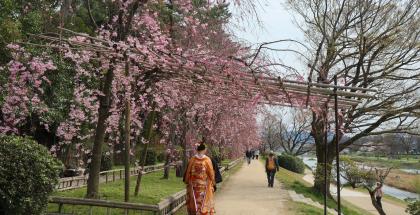 Les berges de la rivière Kamo-gawa servent aux déplacements doux dans l'ancienne cité impériale et permettent ainsi de rallier plusieurs sites touristiques et culturels. De cette façon, on recommande l'itinéraire suivant :