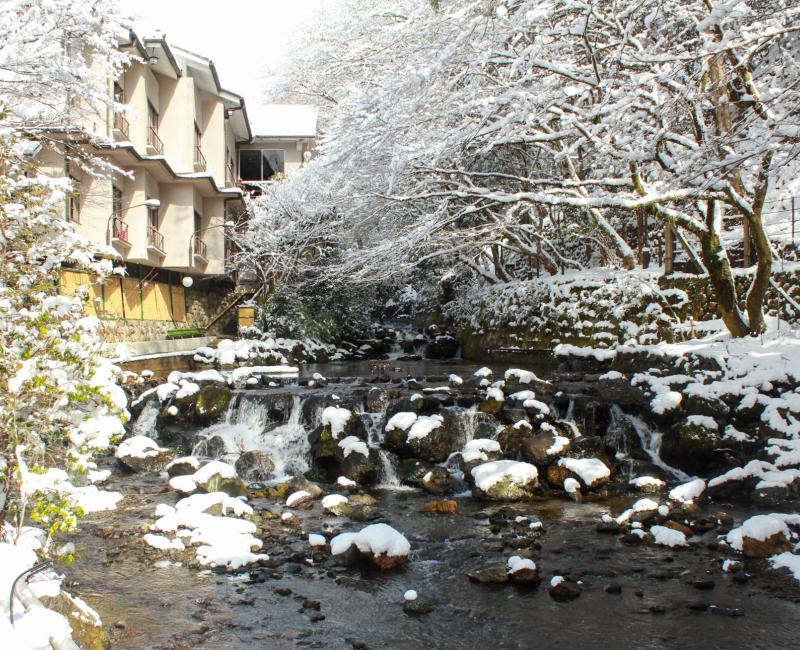 Parmi les établissements présents pour se détendre, on retient l'unique ryokan du lieu baptisé Ugenta. Réputé pour son raffinement, il reste très apprécié des visiteurs à la recherche de quiétude et d'intimité, à un tarif tout de même élevé.