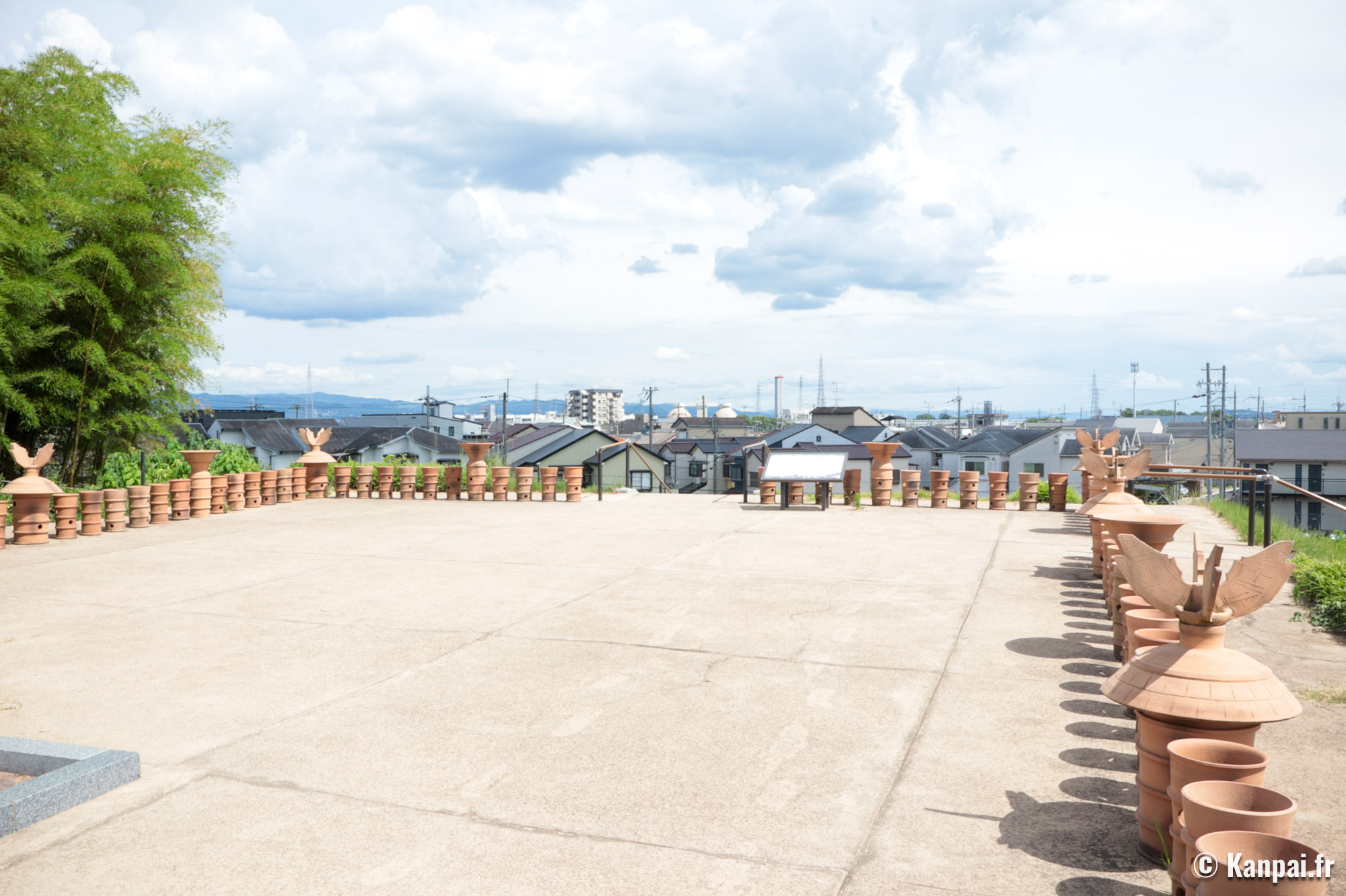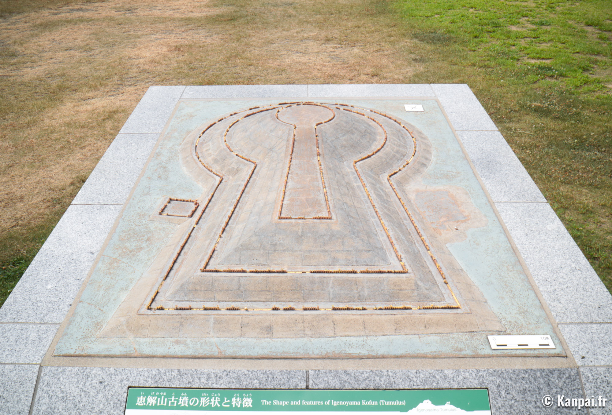 - le Kofun d’Igenoyama, un peu plus au sud, est un tertre funéraire en forme de trou de serrure, édifié lors de la 1ère moitié du Ve siècle. Plusieurs fouilles ont permis d’établir l’importance de ce site, qui a été intégré à un parc historique en 2014 pour le préserver. On peut circuler autour et sur le tumulus, sur lequel des copies de Haniwa, des statuettes en terre cuite spécifiques à ce type de monument, ont été placées pour tenter de reconstituer son aspect originel. Des panneaux explicatifs en anglais permettent de mieux comprendre le site, dont l’accès est gratuit.