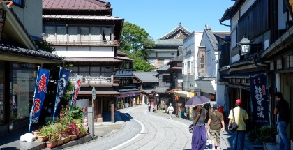 Non loin et avant de reprendre le train du retour, on passe par une petite rue commerçante couverte typique et on se laisse tenter par l’un de ses bouis-bouis aussi bons que charmants, à la recherche peut-être d'une collation au natto, la spécialité locale de Mito.