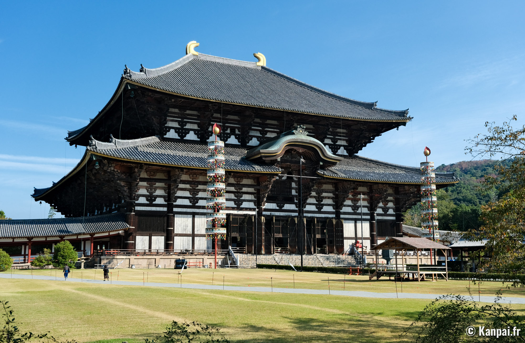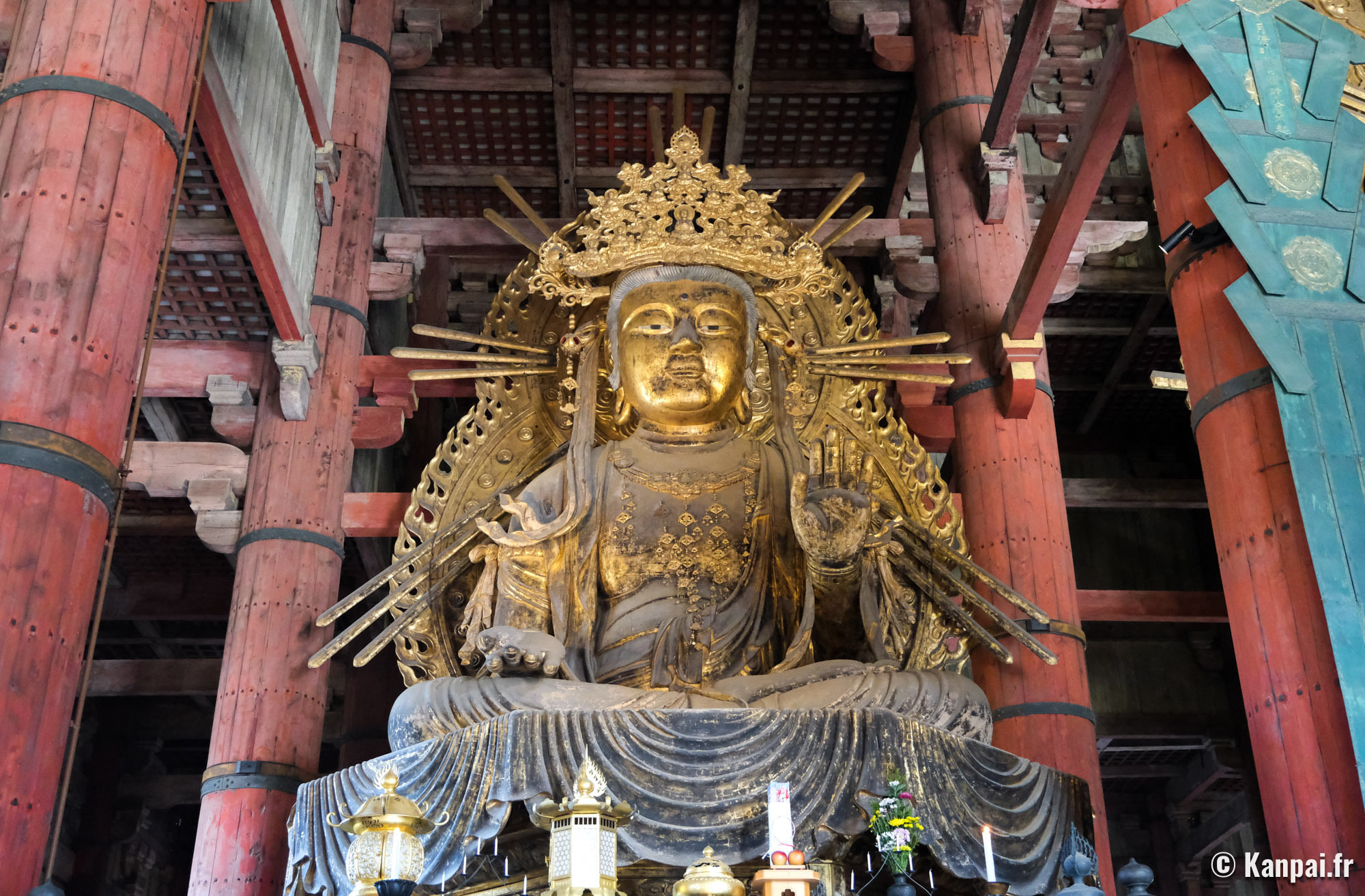 - Todai-ji, le grand temple de lâest, attraction phare de Nara pour son architecture monumentale impressionnante et authentique qui abrite un immense Bouddha en bronze du XIIe siĂšcle. Sa vaste enceinte comprend dâautres pavillons (dont certains sont payants en supplĂ©ment) et lâon recommande particuliĂšrement de visiter le Nigatsu-do pour sa vue panoramique.