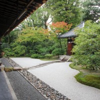 … ses magnifiques peintures intérieures décoratives et ses jardins bien entretenus. … À deux pas de l’effervescence … la visite intérieure de deux pavillons ponctuée par trois jardins de styles différents. L'entrée se fait par l' … continue avec les vues sur les espaces verts : le grand jardin sec karesansui Daioen ; le jardin carré ○△□ …