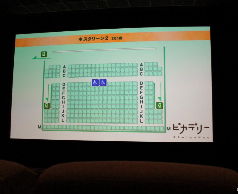Pour ne rien gâcher, la réglementation japonaise n'impose pas les très lumineux panneaux d'issues de secours disposés autour de l'écran, rendant ainsi la salle très sombre et participant d'une excellente expérience cinématographique.