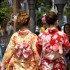 Hommes et femmes sont chaussés de zori (草履), des sandales à semelles compensées maintenues par une lanière passant entre le premier et le deuxième orteil. Celles des femmes sont plus épaisses et leurs talons plus hauts que la pointe. Elles se portent une à deux pointures plus courtes que des chaussures normales, le pied dépassant à l'arrière, ce qui contribue à donner aux femmes une démarche instable.