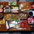 Ensuite, tout le monde rentre pour un festin appelé osechi-ryori (お節料理), composé de plats variés ; une tradition qui remonte à l'ère Heian. On mange ces assortiments préparés dans des boîtes compartimentées (jubako / 重箱) préparées à l'avance. En règle générale, ce sont les mères de famille qui s'en occupent, mais de plus en plus de Japonais les achètent désormais toutes prêtes au supermarché.