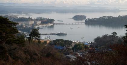 - sur la côte Pacifique à Matsushima, une dentelle d'îles coiffées de pins considérée comme une des 3 plus belles vues du Japon ;