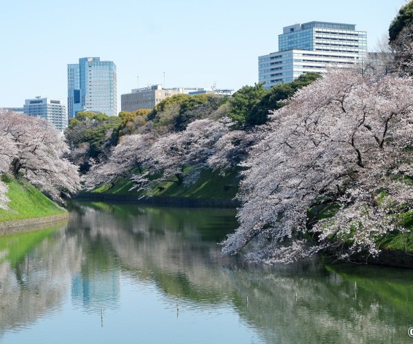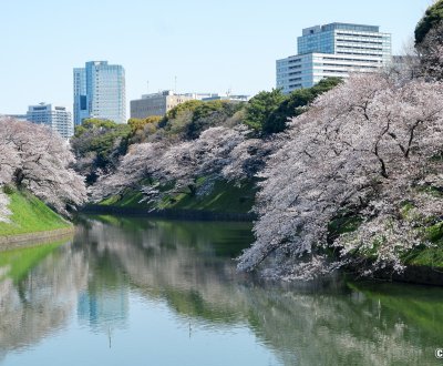 Chiyoda, l'arrondissement central de Tokyo, est surtout connu pour abriter à son accès est le palais impérial, dont les jardins intérieurs ne sont visibles (dans un bain de foule) que deux jours par an. Par son entrée nord on accède à Chidorigafuchi, particulièrement courue en période de cerisiers en fleurs, notamment pour sa balade autour de l'étang.