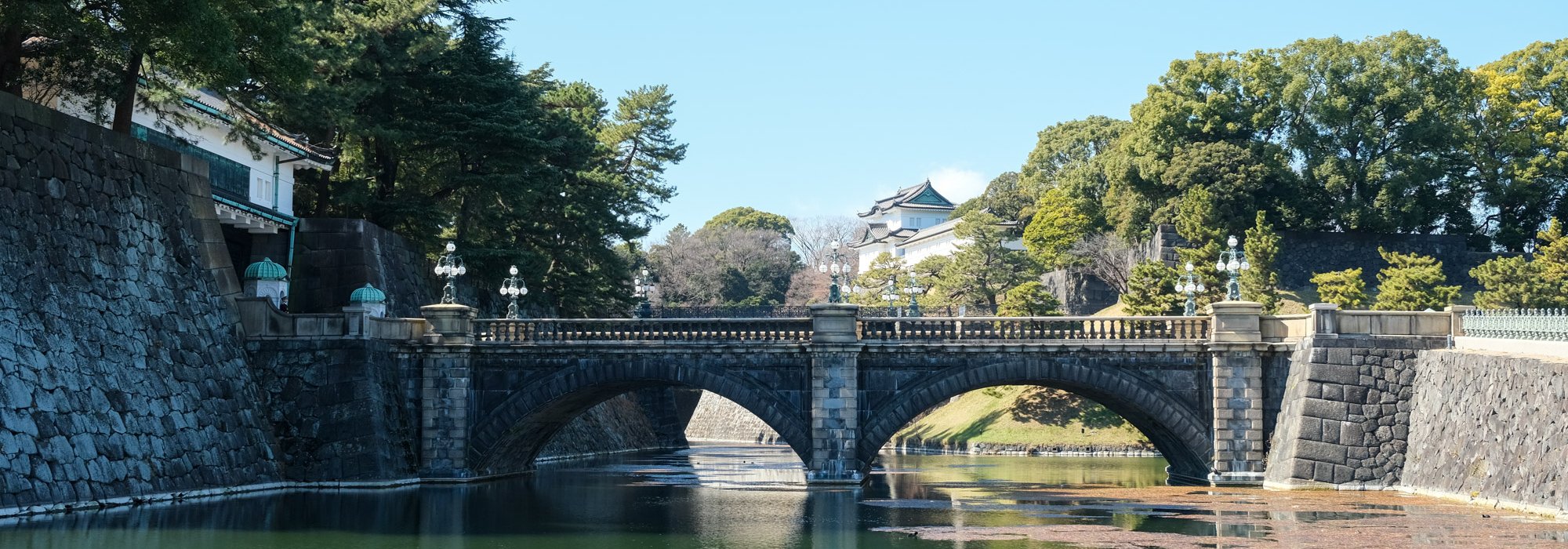 Entourés des grattes-ciel en plein cœur de Tokyo, ces espaces restent protégés par les douves tout autour, qui s'accompagnent des remparts plus ou moins bien conservés. C'est encore tout ce qu'il reste du fameux château 🏯 d'Edo, autrefois demeure des shoguns (seigneurs) de l'époque Tokugawa. À noter que les douves, qui n'avaient pas été nettoyées depuis 1965, bénéficient enfin d'un nouveau système d'épuration depuis fin 2015.