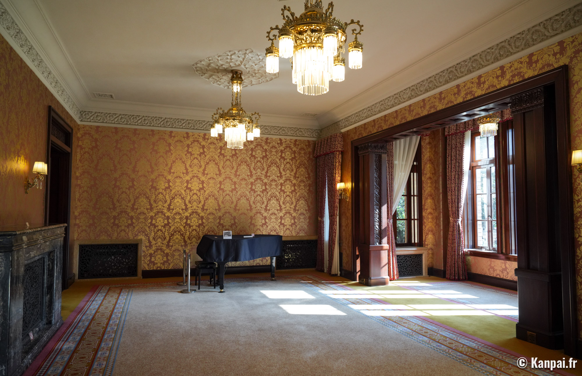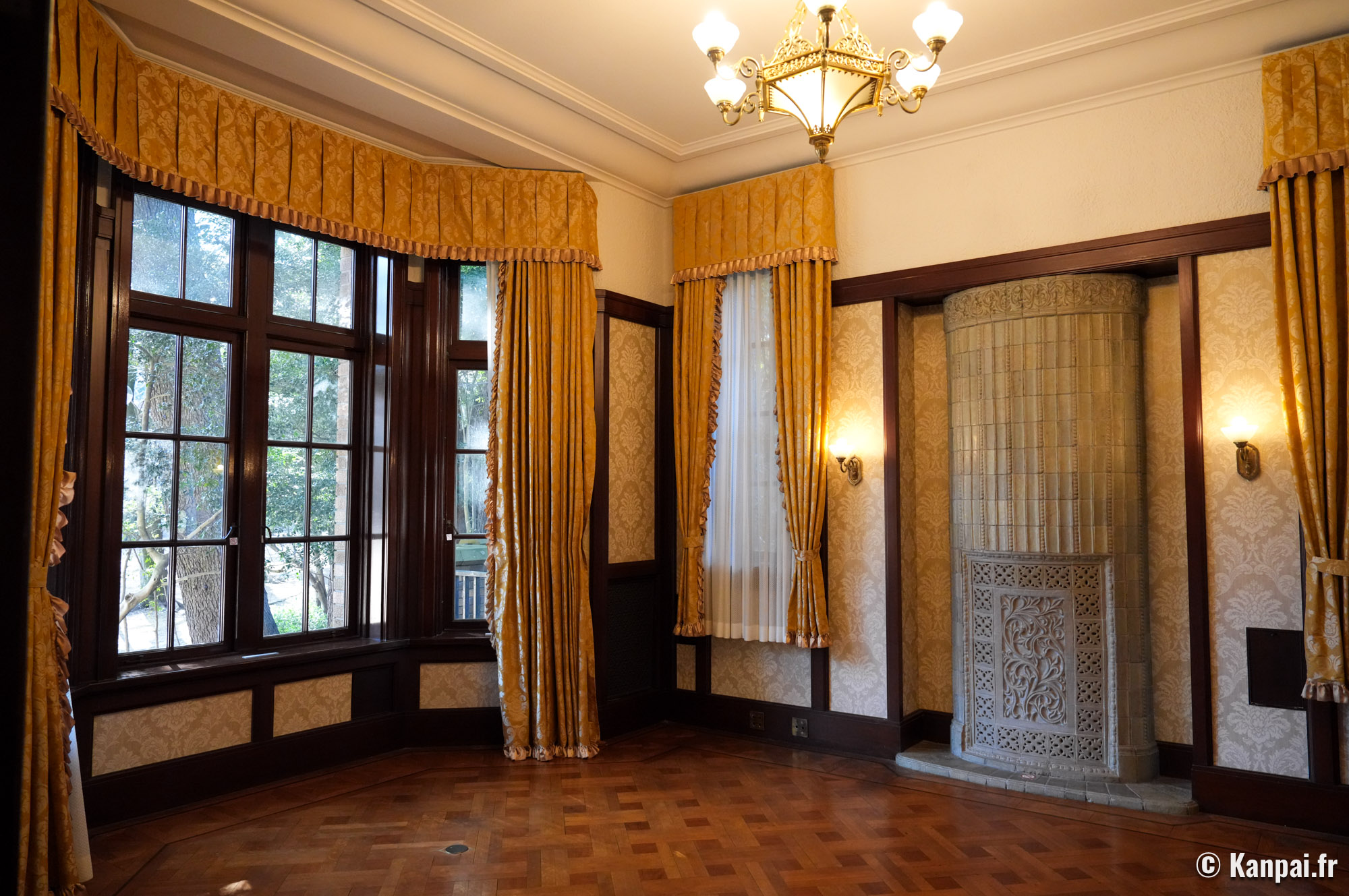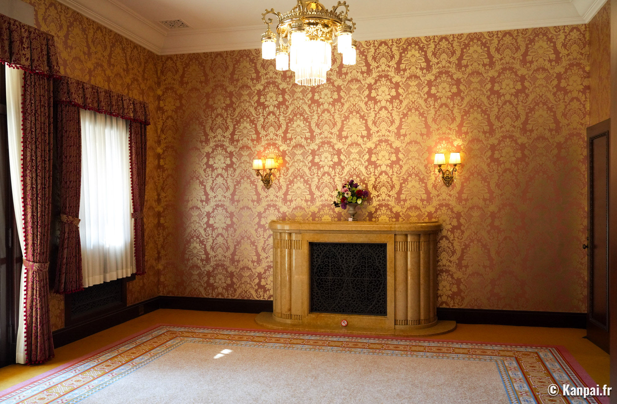 - Yôkan, le pavillon de style occidental de 1929, un manoir de briques dans le style architectural Tudor du XVIIe siècle, destiné à la réception d’hôtes de marque étrangers, au rez-de-chaussée et à l’habitation au 1er étage. L’intérieur bénéficie d’une décoration à l’occidentale, foisonnante de motifs variés de tissus de Damas, de marbre et de bois précieux. Il a bénéficié des technologies anti-sismiques les plus en pointe à son époque.