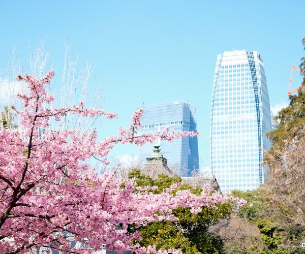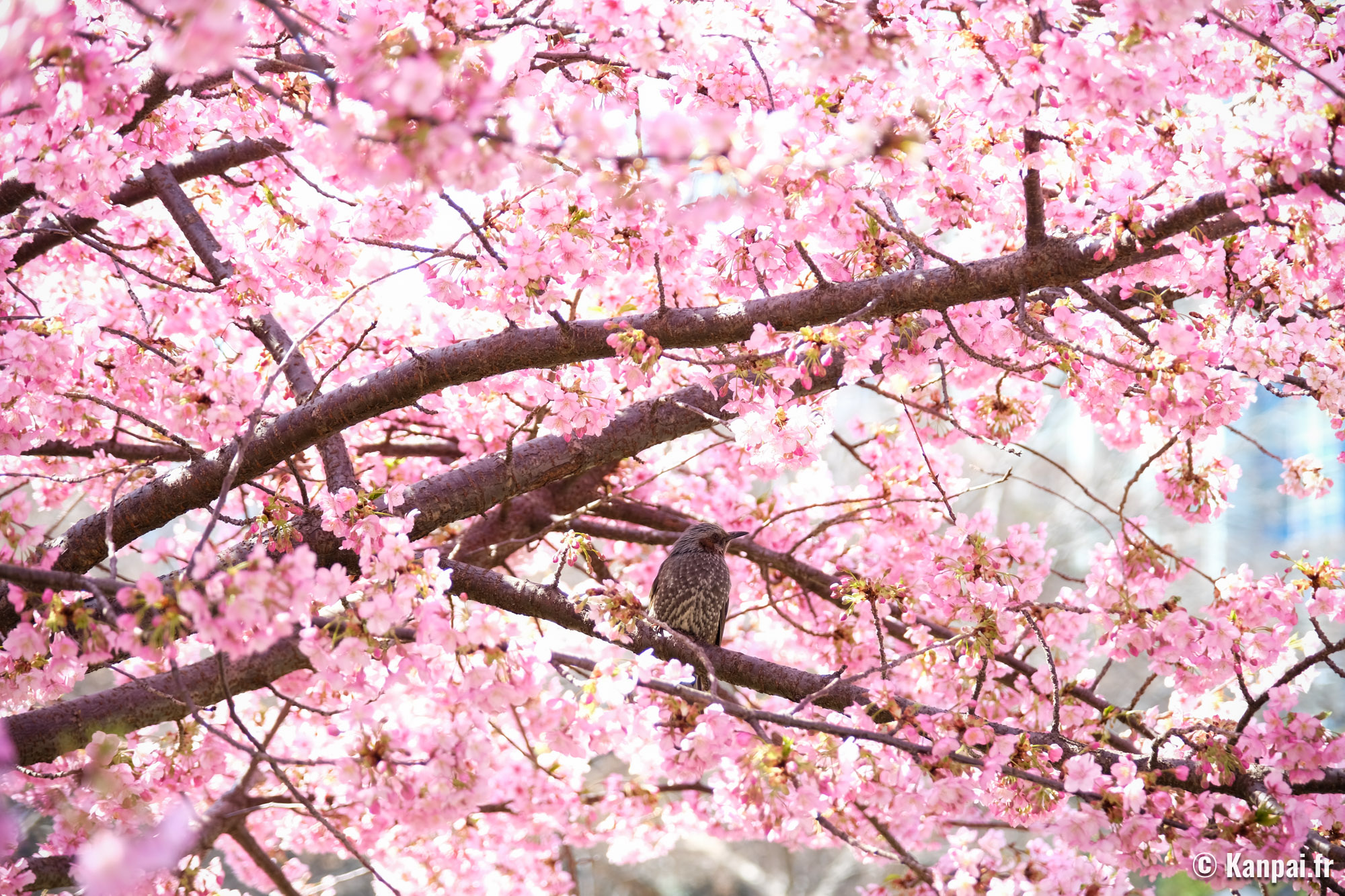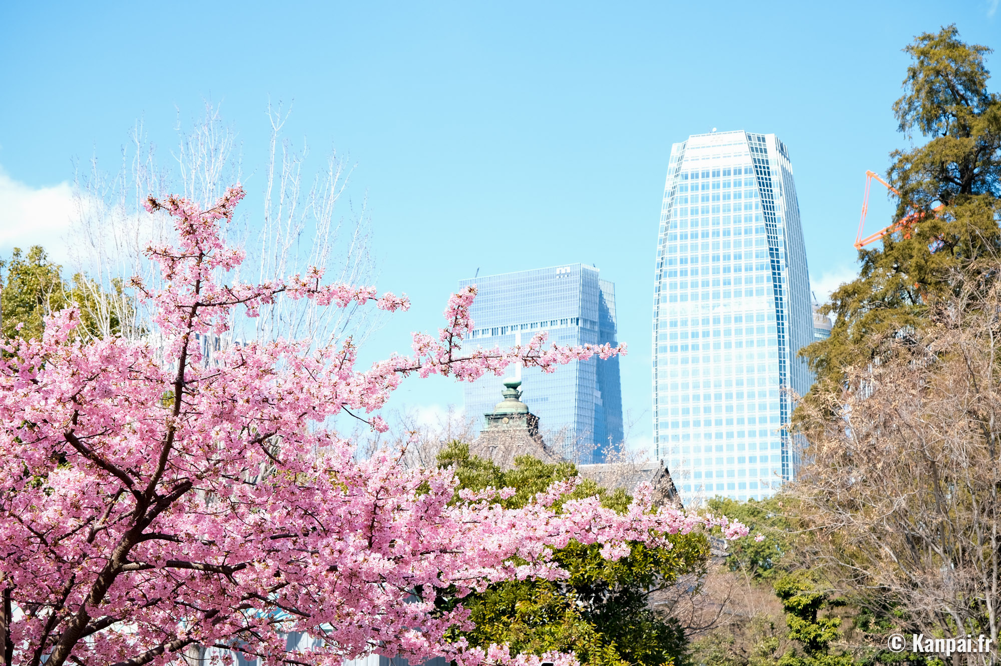- un cerisier 🌸 kawazu à floraison précoce qui s'épanouit au début du mois du mars, non loin des grandes pelouses ;