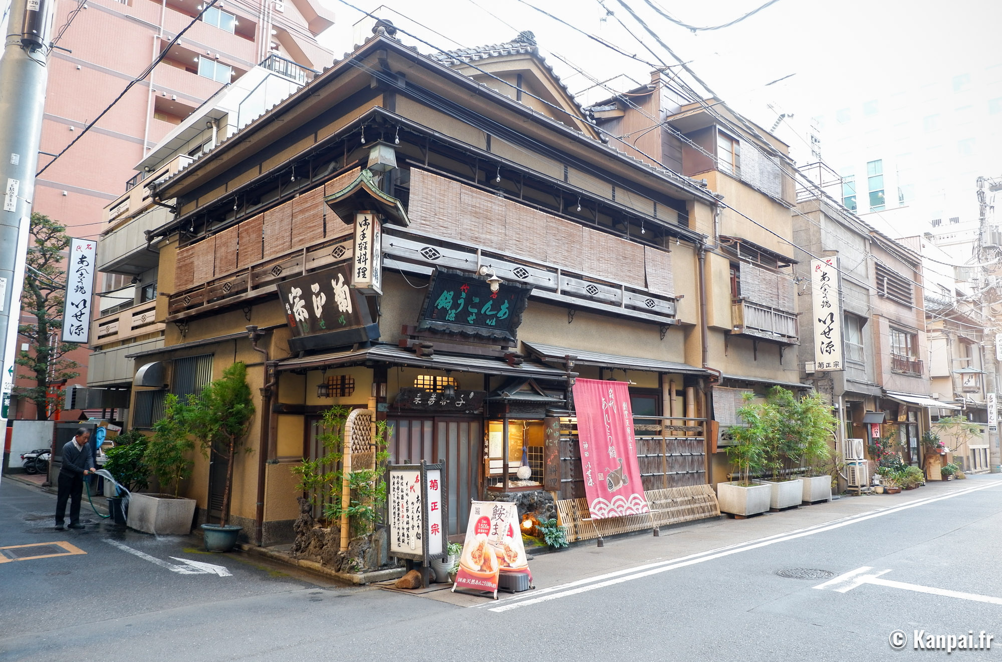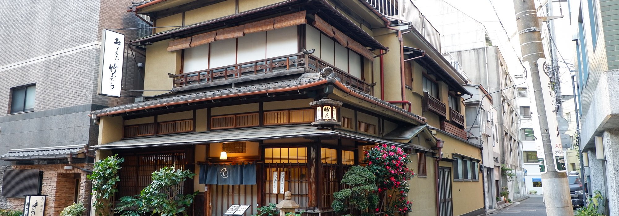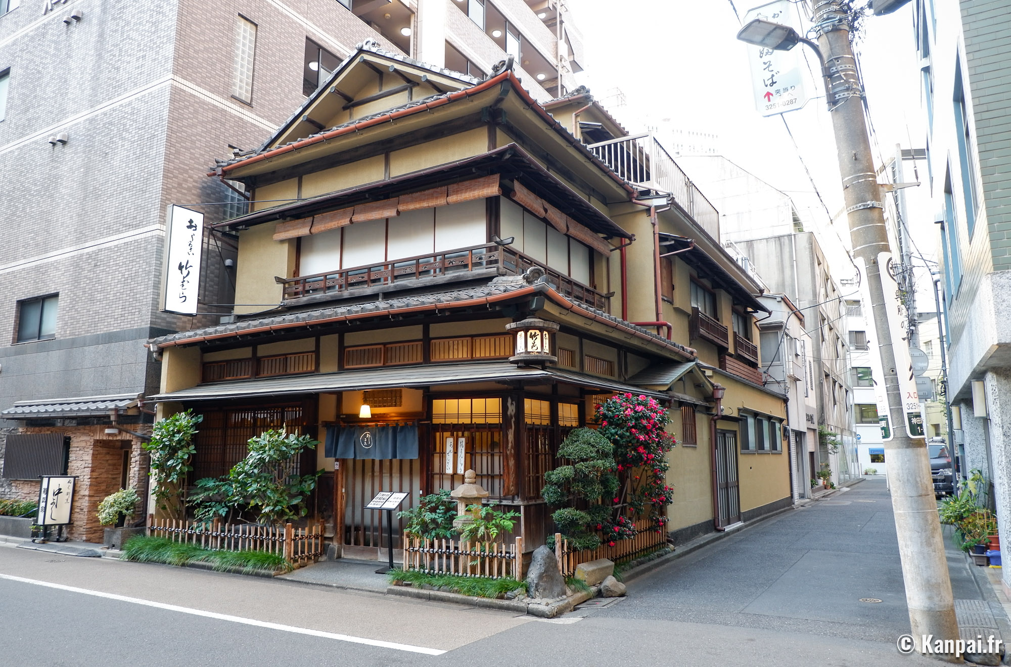 À 2 pas de la rivière Kanda et de mAAch ecute Kanda Manseibashi, une ancienne gare reconvertie en centre commercial, Takemura kissaten est une institution bientôt centenaire établie au cœur des anciens quartiers populaires de la capitale japonaise. Cette maison en bois à 3 étages et au toit pentu de style irimoya occupe l’angle d’une parcelle, apparaissant comme un îlot anachronique dans un quartier aux constructions modernes assez banales.