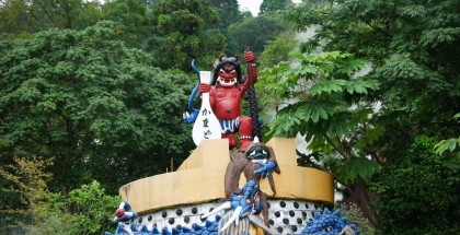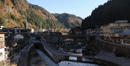 Non loin, le bâtiment moderne du musée des Trésors abrite une belle collection composée notamment de katanas, de statues et d'étoffes datant du IXe au XVIIe siècles. La promenade continue vers les bâtiments principaux, construits dans un style d'architecture particulier baptisé Hachiman-zukuri. Pour chacun des trois dieux vénérés, deux pavillons côte à côte sont reliés entre eux par la toiture. Cette disposition, qui permet à la divinité d'aller et venir sans être vu, ajoute à l'ambiance secrète et mystique des lieux, elle-même renforcée par la forêt d'arbres centenaires alentour. Enfin, en descendant vers la sortie, on s'arrête devant Kurehashi, le pont couvert dont l'éclatante couleur rouge-orangée tranche à merveille avec l'environnement verdoyant.