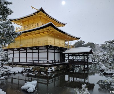 Bien qu’éphémère, le phénomène météorologique enveloppe la cité millénaire d’une atmosphère cotonneuse et légèrement fantastique qui sublime les monuments bien connus de Kyoto, un peu ternes en hiver sans la végétation. Le blanc de la neige réveille l’éclat du vermillon des sanctuaires, et anime avec légèreté les jardins Zen.